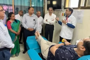 रक्तकेंद्रास भेट देणाऱ्या सेवा इंटरनॅशनलच्या कार्यकर्त्यांची महत्त्वाची भूमिका